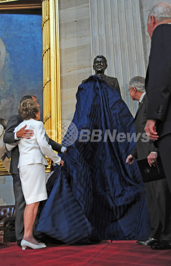 故レーガン元米大統領の像が完成、除幕式にはナンシー夫人も出席