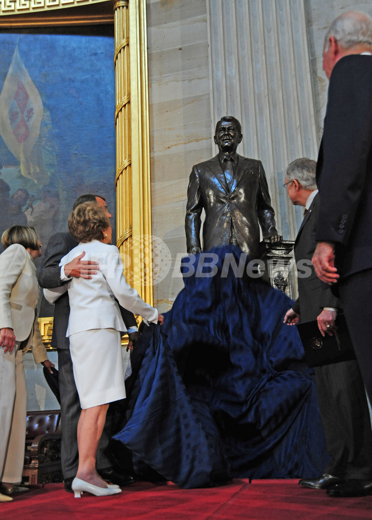 故レーガン元米大統領の像が完成、除幕式にはナンシー夫人も出席
