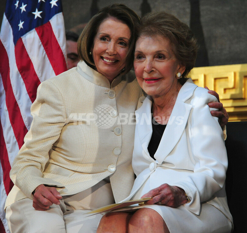 故レーガン元米大統領の像が完成、除幕式にはナンシー夫人も出席