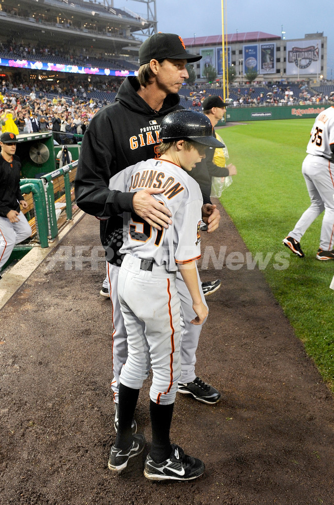 【6月5日 AFP】(記事更新、写真追加)09MLB、サンフランシスコ・ジャイアンツ(San Francisco Giants)のランディ・ジョンソン(Randy Johnson)が4日、ワシントン・ナショナルズ(Washington Nationals)戦に先発登板し、6回を投げ2安打1失点で今季5勝目を挙げ、メジャー通算300勝を達成した。試合はジャイアンツが5-1でナショナルズを下した。