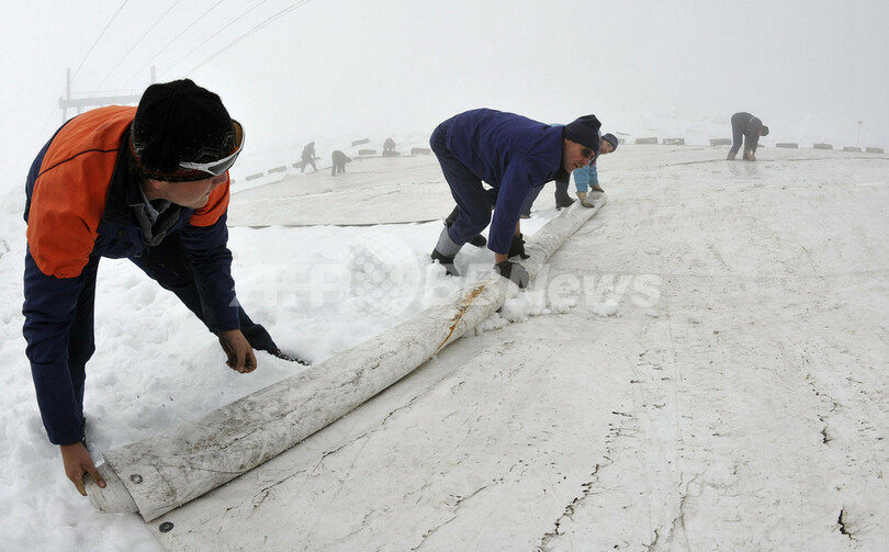 ニュース 環境・科学 独最高峰の氷河に「日よけカバー」、地球温暖化に対抗 2009年6月5日 13:02 発信地:ツークシュピッツェ山/ドイツ [ ヨーロッパ ドイツ ] このニュースをシェア ‹ › ❮ 1/7 ❯ ドイツの最高峰ツークシュピッツェ(Zugspitze)山で3日、氷河にシートをかぶせる作業員たち。同山の標高2700メートル付近では夏の間、氷河が溶けるのを食い止めるため、広大なシートをかぶせる(2009年6月3日撮影)。(c)AFP/DDP/LENNART PREISS 画像作成中 ! 【6月5日 AFP】ドイツの最高峰ツークシュピッツェ(Zugspitze)山で3日、氷河にシートをかぶせる作業員たち。同山の標高2700メートル付近では毎年夏の間、氷河が溶けるのを食い止めるため、広大なシートをかぶせる作業が行われている。(c)AFP 環境・科学 一覧へ> メディア・報道関係・法人の方向け 写真・動画 購入のお問合せ>