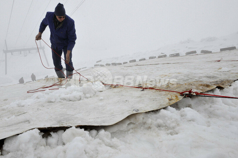 ニュース 環境・科学 独最高峰の氷河に「日よけカバー」、地球温暖化に対抗 2009年6月5日 13:02 発信地:ツークシュピッツェ山/ドイツ [ ヨーロッパ ドイツ ] このニュースをシェア ‹ › ❮ 4/7 ❯ ドイツの最高峰ツークシュピッツェ(Zugspitze)山で3日、氷河にシートをかぶせる作業員たち。同山の標高2700メートル付近では夏の間、氷河が溶けるのを食い止めるため、広大なシートをかぶせる(2009年6月3日撮影)。(c)AFP/DDP/LENNART PREISS 画像作成中 ! 【6月5日 AFP】ドイツの最高峰ツークシュピッツェ(Zugspitze)山で3日、氷河にシートをかぶせる作業員たち。同山の標高2700メートル付近では毎年夏の間、氷河が溶けるのを食い止めるため、広大なシートをかぶせる作業が行われている。(c)AFP 環境・科学 一覧へ> メディア・報道関係・法人の方向け 写真・動画 購入のお問合せ>