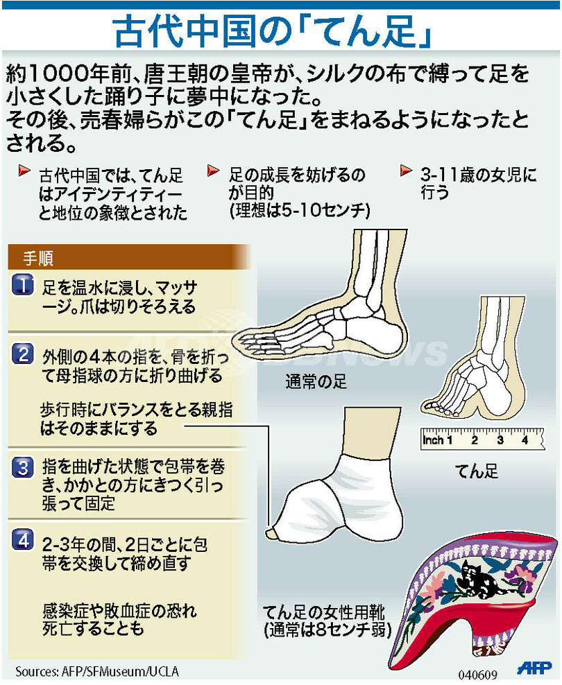 ニュース ライフ 図解 【図解】「てん足」の起源と手順 2009年6月5日 13:02 発信地:北京/中国 [ 中国・台湾 中国 ] このニュースをシェア (c)AFP 【6月5日 AFP】図は、古代中国の風習「てん足」について示したもの。(c)AFP<ニュース解説画像一覧へ> ライフ 一覧へ> メディア・報道関係・法人の方向け 写真・動画 購入のお問合せ>