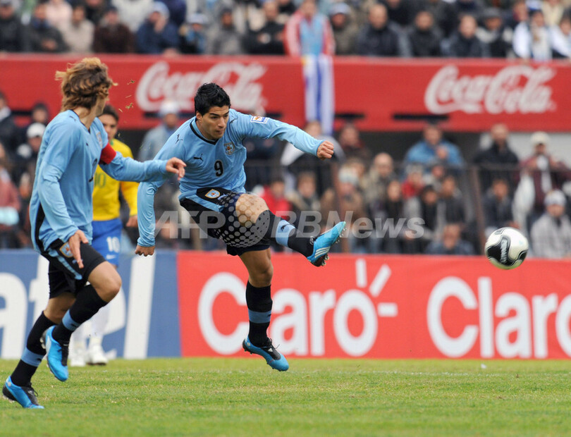 【6月7日 AFP】(記事更新、写真追加)2010年サッカーW杯南アフリカ大会(2010 World Cup)南米予選第13節、ウルグアイ対ブラジル。試合はブラジルが4-0で快勝した。第12節を終えて首位に立っていたパラグアイが同日行われた試合でチリに敗れたため、ブラジルが首位に立った。
