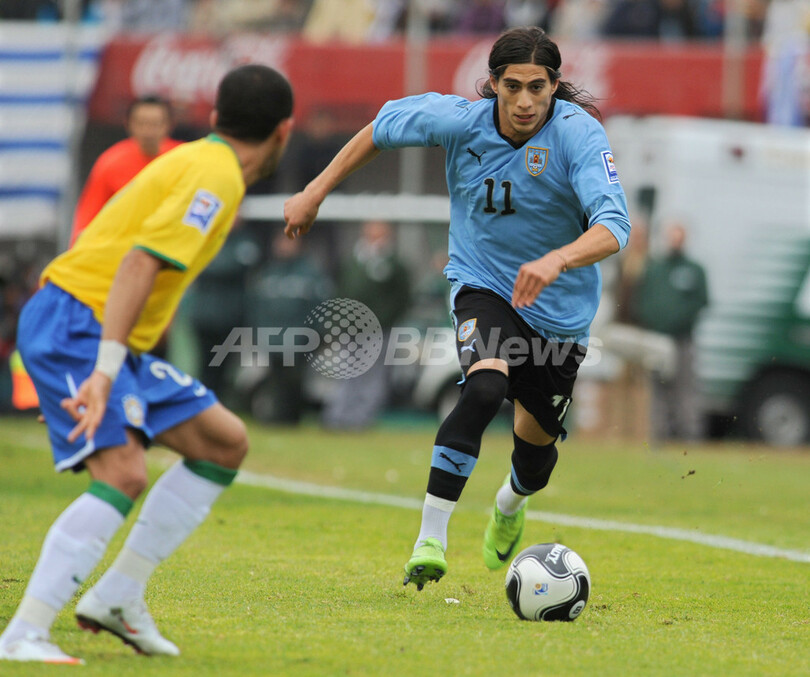 【6月7日 AFP】(記事更新、写真追加)2010年サッカーW杯南アフリカ大会(2010 World Cup)南米予選第13節、ウルグアイ対ブラジル。試合はブラジルが4-0で快勝した。第12節を終えて首位に立っていたパラグアイが同日行われた試合でチリに敗れたため、ブラジルが首位に立った。