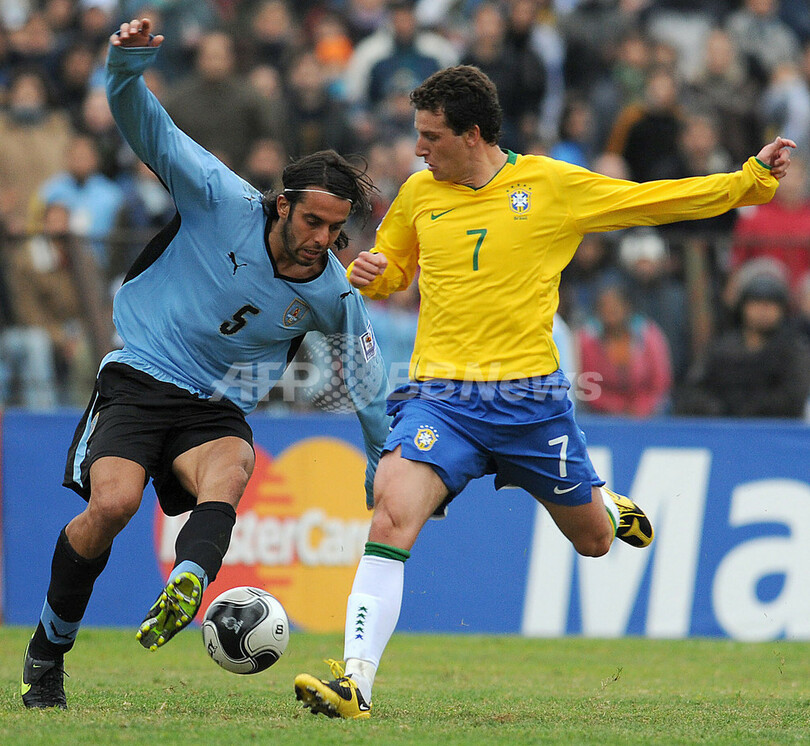 【6月7日 AFP】(記事更新、写真追加)2010年サッカーW杯南アフリカ大会(2010 World Cup)南米予選第13節、ウルグアイ対ブラジル。試合はブラジルが4-0で快勝した。第12節を終えて首位に立っていたパラグアイが同日行われた試合でチリに敗れたため、ブラジルが首位に立った。