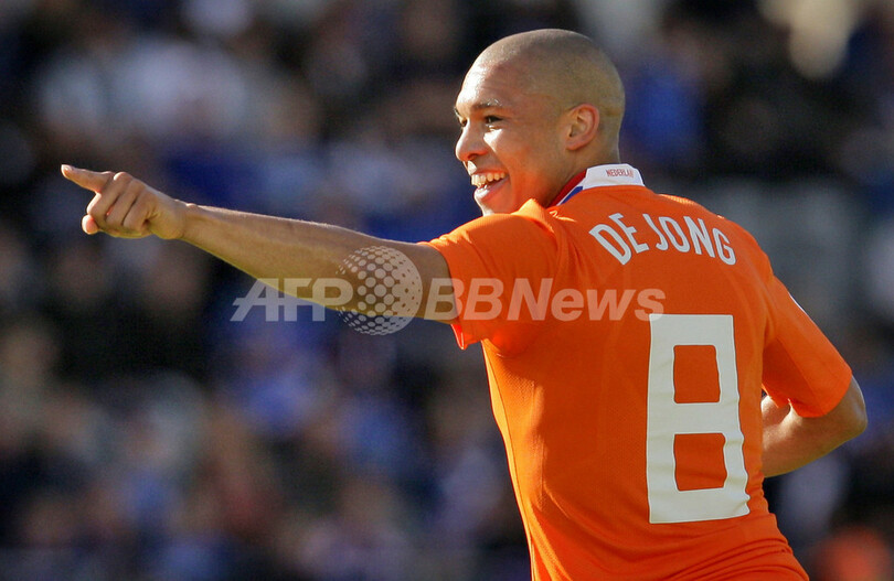 ベルト・ファン・マルワイク(Bert van Marwijk)監督率いるオランダは、勝ち点を18に伸ばし、2位のスコットランドとの勝ち点差を11としている。(c)AFP