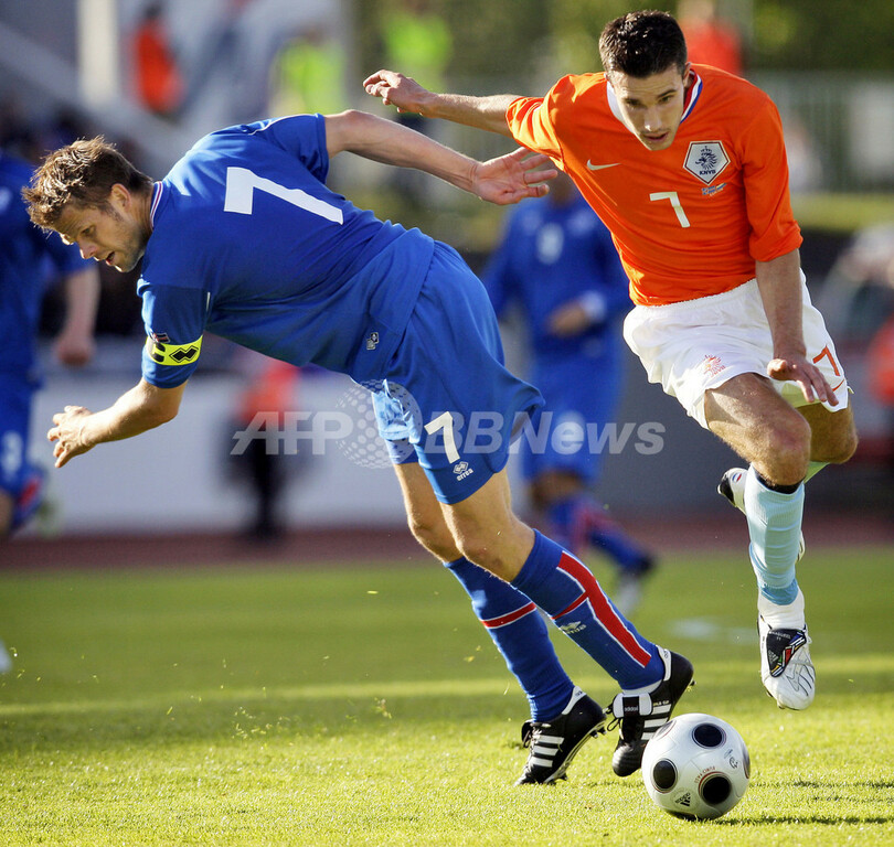 【6月7日 AFP】(記事更新、写真追加)2010年サッカーW杯南アフリカ大会(2010 World Cup)欧州予選・グループ9、アイスランド対オランダ。試合はオランダが2-1で勝利し6連勝を飾り、勝ち点を18に伸ばして本大会出場を果たした。