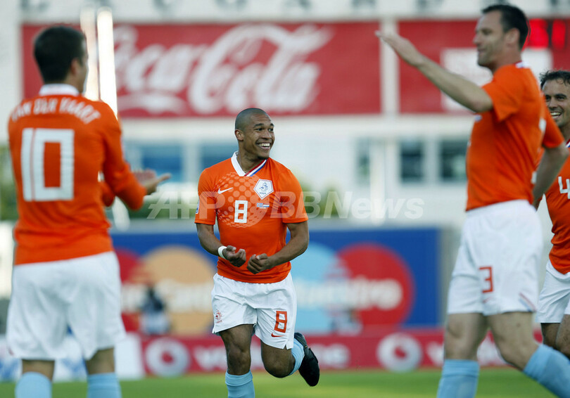 ベルト・ファン・マルワイク(Bert van Marwijk)監督率いるオランダは、勝ち点を18に伸ばし、2位のスコットランドとの勝ち点差を11としている。(c)AFP
