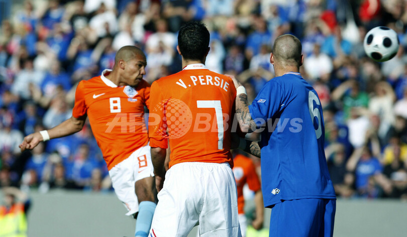 【6月7日 AFP】(記事更新、写真追加)2010年サッカーW杯南アフリカ大会(2010 World Cup)欧州予選・グループ9、アイスランド対オランダ。試合はオランダが2-1で勝利し6連勝を飾り、勝ち点を18に伸ばして本大会出場を果たした。