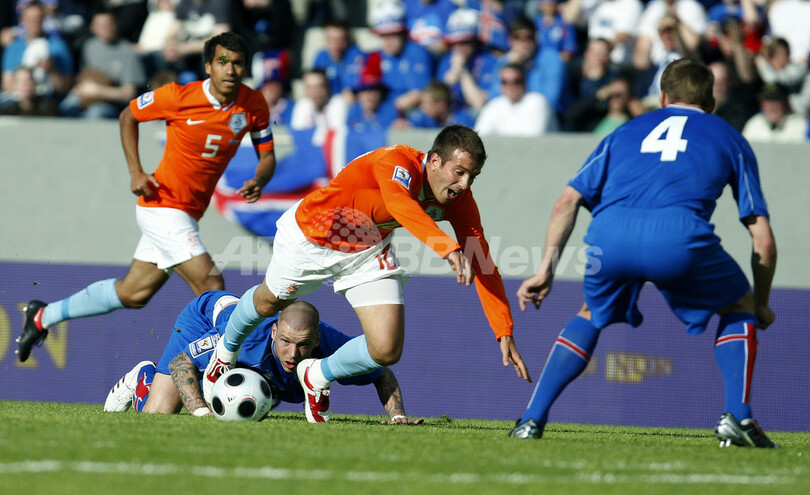 【6月7日 AFP】(記事更新、写真追加)2010年サッカーW杯南アフリカ大会(2010 World Cup)欧州予選・グループ9、アイスランド対オランダ。試合はオランダが2-1で勝利し6連勝を飾り、勝ち点を18に伸ばして本大会出場を果たした。