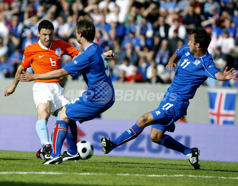 【6月7日 AFP】(記事更新、写真追加)2010年サッカーW杯南アフリカ大会(2010 World Cup)欧州予選・グループ9、アイスランド対オランダ。試合はオランダが2-1で勝利し6連勝を飾り、勝ち点を18に伸ばして本大会出場を果たした。