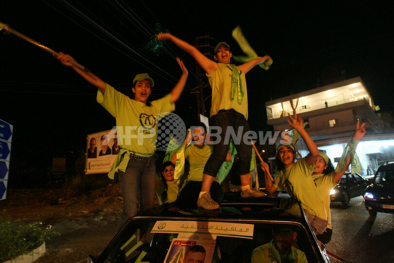 【6月8日 AFP】(写真追加)7日に投開票が行われたレバノン国民議会選(定数128)で、「3月14日連合(March 14)」の名で知られる親米反シリアの与党連合は8日、イスラム教シーア(Shiite)派組織ヒズボラ(Hezbollah)を軸とする反米親シリア勢力との接戦を制したとして、勝利宣言を行った。