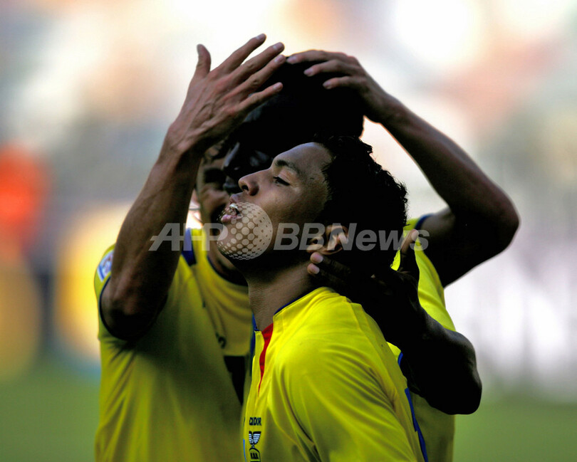 スポーツ サッカー エクアドル アウェーでペルーに勝利、W杯予選 2009年6月8日 11:23 発信地:リマ/ペルー [ 中南米 ペルー ] このニュースをシェア ‹ › ❮ 7/8 ❯ 2010年サッカーW杯南アフリカ大会(%%2010 World Cup%%)南米予選第13節、ペルー対エクアドル。試合はエクアドルが2-1で勝利し、通算成績を4勝4敗5分けとした。写真は前半38分に先制点を決めてチームメイトと喜びを分かち合うエクアドルのジェフェルソン・モンテーロ(%%Jefferson Montero%%)。(2009年6月7日撮影)(c)AFP/ERNESTO BENAVIDES 画像作成中 ! 【6月8日 AFP】2010年サッカーW杯南アフリカ大会(2010 World Cup)南米予選第13節、ペルー対エクアドル。試合はエクアドルが2-1で勝利し、通算成績を4勝4敗5分けとした。(c)AFP サッカー 一覧へ> メディア・報道関係・法人の方向け 写真・動画 購入のお問合せ>