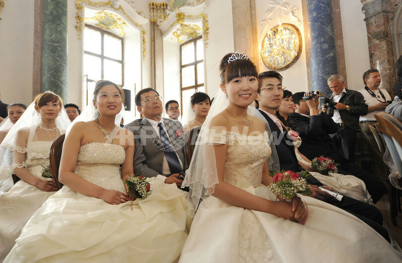 ニュース ライフ ドイツでロマンチックに集団結婚式、中国人カップル 2009年6月8日 14:47 発信地:シュバンガウ/ドイツ [ ヨーロッパ ドイツ ] このニュースをシェア ‹ › ❮ 9/14 ❯ ドイツ南部フュッセン(Fuessen)の聖マング(St. Mang)教会で7日、中国から訪れた新婚カップル39組が集団結婚式を挙げた。幸せいっぱいの新郎新婦はその後、シュバンガウ(Schwangau)に向かい、ノイシュバンシュタイン城(Neuschwanstein Palace)を背に、地元の楽団に祝福されながら記念撮影に臨んだ。写真は、聖マング教会で挙式する中国人カップルたち(2009年6月7日撮影)。(c)AFP/DDP/OLIVER LANG 画像作成中 ! 【6月8日 AFP】ドイツ南部フュッセン(Fuessen)の聖マング教会(St. Mang)で7日、中国から訪れた新婚カップル39組が集団結婚式を挙げた。幸せいっぱいの新郎新婦はその後、シュバンガウ(Schwangau)に向かい、ノイシュバンシュタイン城(Neuschwanstein Palace)を背に、地元の楽団に祝福されながら記念撮影に臨んだ。(c)AFP ライフ 一覧へ> メディア・報道関係・法人の方向け 写真・動画 購入のお問合せ>