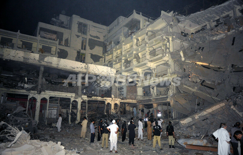 【6月10日 AFP】(一部更新)パキスタン・北西辺境州の州都ペシャワル(Peshawar)にある5つ星ホテル、パールコンチネンタルホテル(Pearl Continental Hotel)で9日、爆弾を積んだトラックが爆発し、16人が死亡、57人が負傷した。
