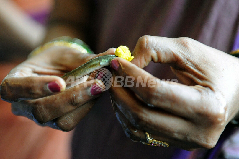 生きた魚が口移し、ぜんそくに効く秘伝の薬に数千人が殺到 インド