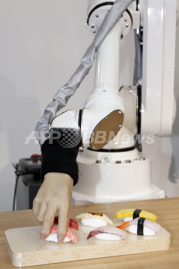 ニュース 環境・科学 こぼれ話 すしをつまみ上げるロボットハンド、国際食品工業展 2009年6月10日 22:22 発信地:東京 [ アジア・オセアニア 東京 ] このニュースをシェア ‹ › ❮ 3/5 ❯ 東京ビッグサイトで開催中の2009国際食品工業展(International Food Machinery and Technology Exhibition、FOOMA)で披露されたすしをつまみ上げるロボットハンド(2009年6月10日撮影)。(c)AFP/YOSHIKAZU TSUNO 画像作成中 ! 【6月10日 AFP】東京ビッグサイトで開催中の2009国際食品工業展(International Food Machinery and Technology Exhibition、FOOMA)で10日、すしをつまみ上げるロボットハンドが披露された。ロボットハンドは、手の筋肉の役割を果たす空気圧で制御する化学繊維により、人間の指と同じ大きさの指の動きを実現している。(c)AFP 環境・科学 一覧へ> メディア・報道関係・法人の方向け 写真・動画 購入のお問合せ>