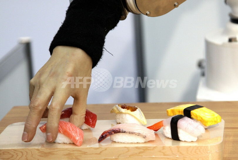 ニュース 環境・科学 こぼれ話 すしをつまみ上げるロボットハンド、国際食品工業展 2009年6月10日 22:22 発信地:東京 [ アジア・オセアニア 東京 ] このニュースをシェア ‹ › ❮ 2/5 ❯ 東京ビッグサイトで開催中の2009国際食品工業展(International Food Machinery and Technology Exhibition、FOOMA)で披露されたすしをつまみ上げるロボットハンド(2009年6月10日撮影)。(c)AFP/YOSHIKAZU TSUNO 画像作成中 ! 【6月10日 AFP】東京ビッグサイトで開催中の2009国際食品工業展(International Food Machinery and Technology Exhibition、FOOMA)で10日、すしをつまみ上げるロボットハンドが披露された。ロボットハンドは、手の筋肉の役割を果たす空気圧で制御する化学繊維により、人間の指と同じ大きさの指の動きを実現している。(c)AFP 環境・科学 一覧へ> メディア・報道関係・法人の方向け 写真・動画 購入のお問合せ>