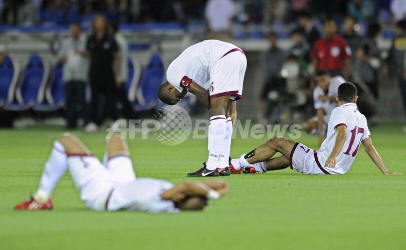 日本と引き分けたカタールは、1勝3分4敗の勝ち点6で予選全日程を終え、予選敗退が決まった。(c)AFP