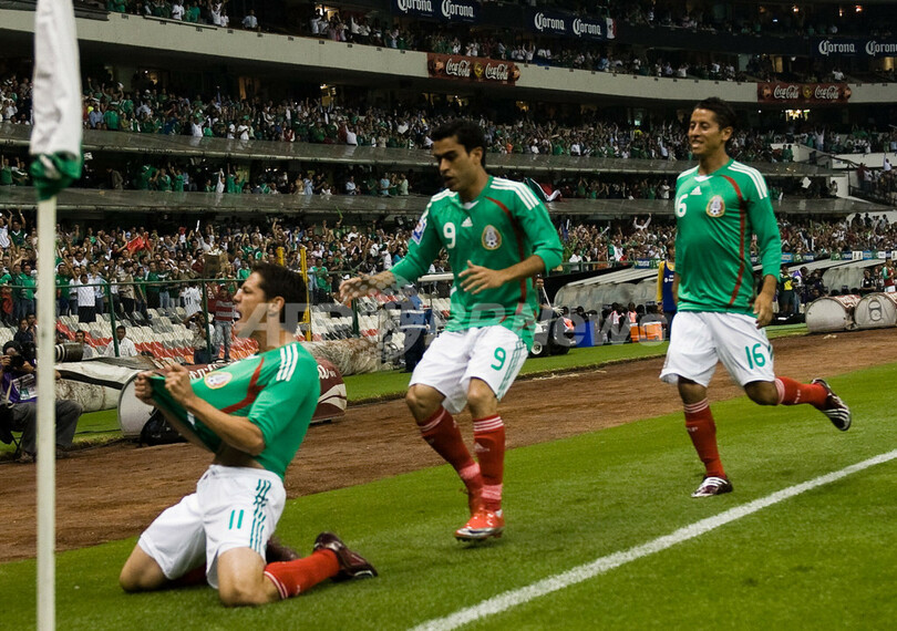 メキシコは1-1の同点で迎えた後半3分にオスカル・ロハス(Oscar Rojas)が勝ち越しゴールを決め勝利し、順位をプレーオフ進出圏内の4位に上げた。(c)AFP