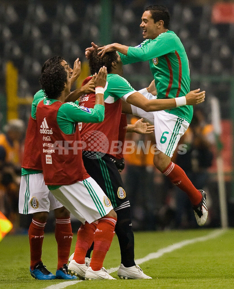 メキシコは1-1の同点で迎えた後半3分にオスカル・ロハス(Oscar Rojas)が勝ち越しゴールを決め勝利し、順位をプレーオフ進出圏内の4位に上げた。(c)AFP