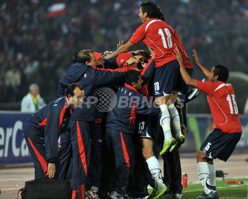 スポーツ サッカー チリ ボリビアに快勝し2位浮上、W杯予選 2009年6月11日 15:59 発信地:サンチアゴ/チリ [ 中南米 チリ ] このニュースをシェア ‹ › ❮ 1/10 ❯ 2010年サッカーW杯南アフリカ大会(%%2010 World Cup%%)南米予選第14節、チリ対ボリビア。試合はチリが4-0でボリビアに快勝し、通算成績を8勝4分け2敗として勝ち点を26に伸ばし、順位を2位に上げた。写真は後半29分にマルコ・エストラーダ(%%Marco Estrada%%)が決めたチームの2点目に歓喜するチリの選手たち。(2009年6月10日撮影)(c)AFP/CLAUDIO SANTANA 画像作成中 ! 【6月11日 AFP】2010年サッカーW杯南アフリカ大会(2010 World Cup)南米予選第14節、チリ対ボリビア。試合はチリが4-0でボリビアに快勝し、通算成績を8勝4分け2敗として勝ち点を26に伸ばし、順位を2位に上げた。(c)AFP サッカー 一覧へ> メディア・報道関係・法人の方向け 写真・動画 購入のお問合せ>