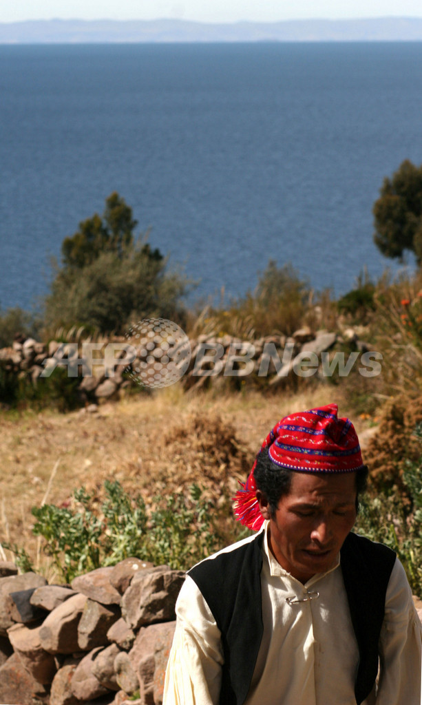 写真は、タキーレ島の小道を歩く男性(2009年5月30日撮影)。(c)AFP/Jaime Razuri