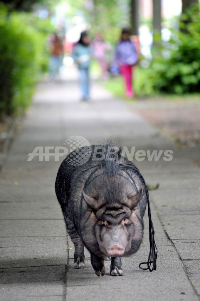 ニュース ライフ こぼれ話 飼いブタ・パロマはリーデル家の一員 2009年6月11日 22:10 発信地:ハンブルク/ドイツ [ ヨーロッパ ドイツ ] このニュースをシェア ‹ › ❮ 1/6 ❯ たいこ腹をしたメスブタのパロマ(Paloma)は、ドイツ・ハンブルク(Hamburg)に住むリーデル家の一員だ。家の中で飼われているパロマは、ひもにつながれて散歩し、飼い主が買い物をするときは辛抱強くスーパーの前で待つ。しかし、パロマが大半の時間を過ごすのは、一家の住む寝室3部屋のマンションの廊下に置かれたかごの中だ。写真は、ドイツ・ハンブルクの歩道を散歩するブタのパロマ(2009年6月8日撮影)。(c)AFP/DDP/FRANK BRANDEL 画像作成中 ! 【6月11日】たいこ腹をしたメスブタのパロマ(Paloma)は、ドイツ・ハンブルク(Hamburg)に住むリーデル家の一員だ。家の中で飼われているパロマは、ひもにつながれて散歩し、飼い主が買い物をするときは辛抱強くスーパーの前で待つ。しかし、パロマが大半の時間を過ごすのは、一家の住む寝室3部屋のマンションの廊下に置かれたかごの中だ。(c)AFP ライフ 一覧へ> メディア・報道関係・法人の方向け 写真・動画 購入のお問合せ>