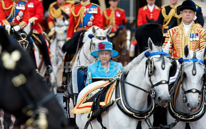 【6月14日 AFP】英国は13日、エリザベス女王(Queen Elizabeth II)の83歳の公式誕生日を迎え、ロンドン(London)で祝賀パレード「Trooping the Colour」などが行われた。エリザベス女王の本当の誕生日は4月21日だが、戸外での祝賀行事に適した天候になる6月第2土曜日を公式誕生日として祝賀行事が行われる。(c)AFP
