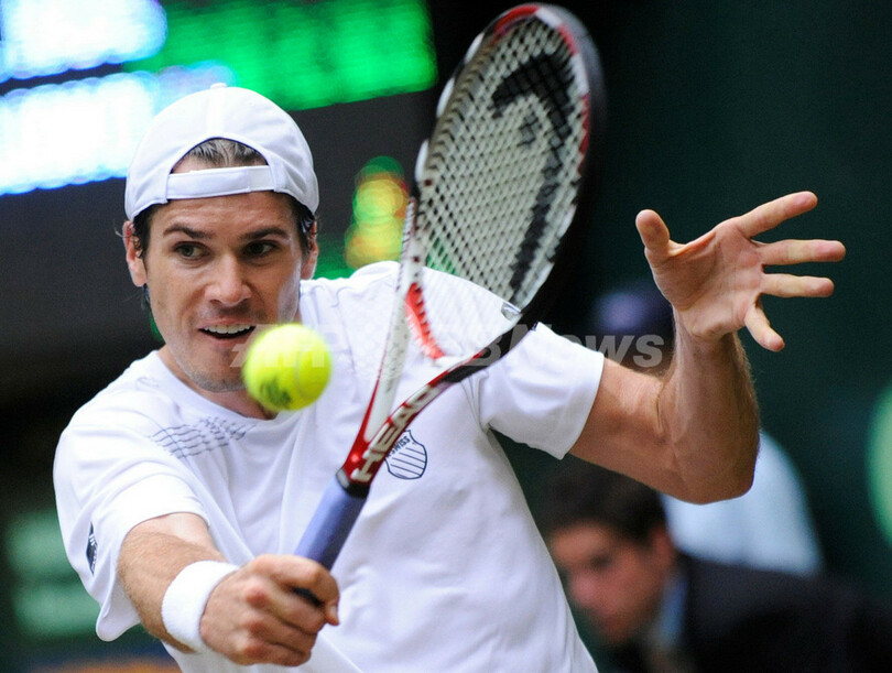 2回戦で世界ランキング9位のジョーウィルフリード・ツォンガ(Jo-Wilfried Tsonga、フランス)を破ったハースは、2008年に負った慢性的な肩の負傷の影響を感じさせず、グラスコートで苦戦していたジョコビッチから初めて勝利を奪った。(c)AFP