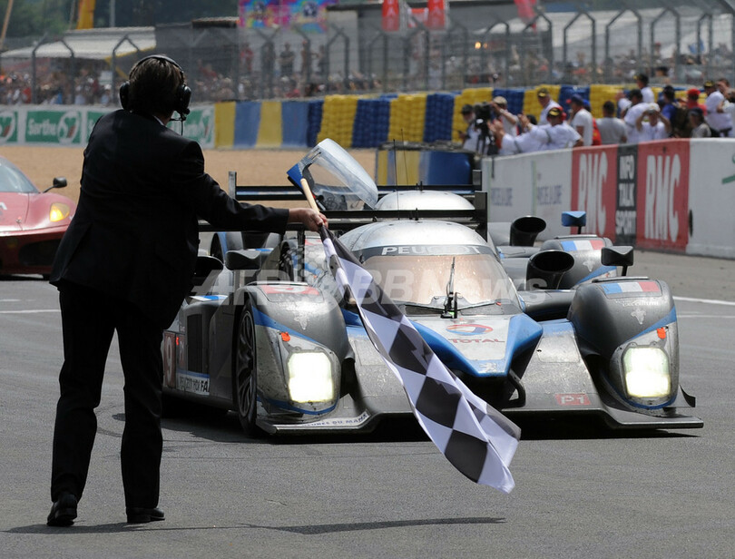 【6月15日 AFP】第77回ルマン24時間耐久レース(Le Mans 24-hour race 2009)決勝。マルク・ジェネ(Marc Gene)、アレキサンダー・ブルツ(Alexander Wurz)、デビッド・ブラバム(David Brabham)組のプジョー908(Peugeot 908)が、382周で優勝した。プジョーの優勝は1993年以来16年ぶり。