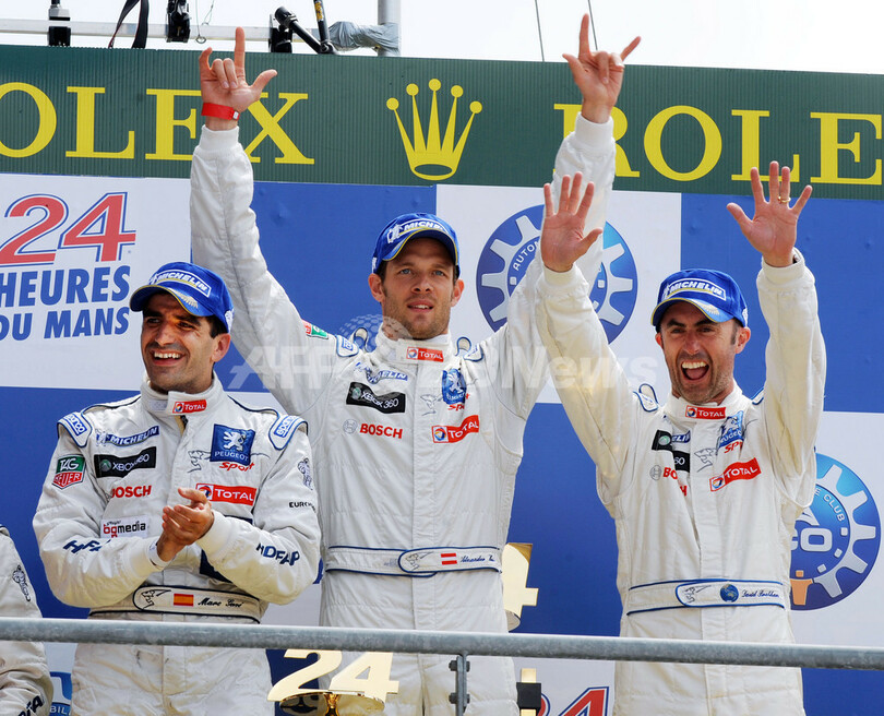 【6月15日 AFP】第77回ルマン24時間耐久レース(Le Mans 24-hour race 2009)決勝。マルク・ジェネ(Marc Gene)、アレキサンダー・ブルツ(Alexander Wurz)、デビッド・ブラバム(David Brabham)組のプジョー908(Peugeot 908)が、382周で優勝した。プジョーの優勝は1993年以来16年ぶり。