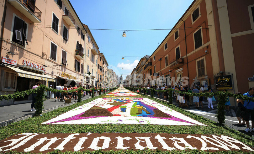 ニュース ライフ こぼれ話 通りを覆い尽くす花にうっとり、毎年恒例「インフォラータ」 伊 2009年6月15日 15:02 発信地:ジェンツァーノ/イタリア [ ヨーロッパ イタリア ] このニュースをシェア ‹ › ❮ 5/11 ❯ イタリア・ローマ(Rome)近郊のジェンツァーノ(Genzano)で14日、毎年恒例の花祭り「インフィオラータ(Infiorata)」が開催された。ベラルディ(Belardi)通りには、2000平方メートルにわたって、色鮮やかな花じゅうたんが敷き詰められた(2009年6月14日撮影)。(c)AFP/Tiziana Fabi 画像作成中 ! 【6月15日 AFP】イタリア・ローマ(Rome)近郊のジェンツァーノ(Genzano)で14日、毎年恒例の花祭り「インフィオラータ(Infiorata)」が開催された。ベラルディ(Belardi)通りには、2000平方メートルにわたって、色鮮やかな花じゅうたんが敷き詰められた。(c)AFP ライフ 一覧へ> メディア・報道関係・法人の方向け 写真・動画 購入のお問合せ>
