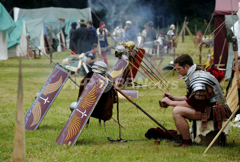写真は、「トイトブルク森の戦い」の再現イベントでローマ帝国軍兵士に扮(ふん)した人びと(2009年6月11日撮影)。(c)AFP/DDP/DAVID HECKER