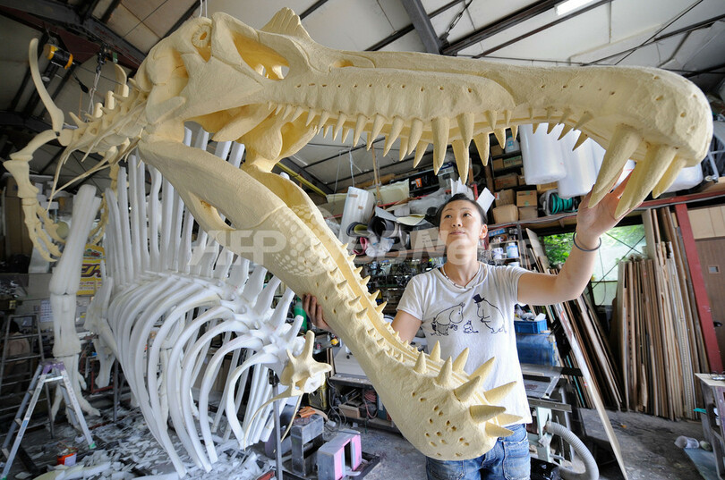 ニュース 環境・科学 肉食恐竜スピノサウルスの骨格、「恐竜2009」で再現 2009年6月15日 22:42 発信地:神奈川 [ アジア・オセアニア 神奈川 ] このニュースをシェア ‹ › ❮ 8/8 ❯ 神奈川県川崎にある模型製作所では、7月18日から千葉県・幕張メッセで開催される恐竜展「恐竜2009」のために、世界最大級の肉食恐竜スピノサウルス(Spinosaurus)の全長17メートルの全身骨格が再現されている。スピノサウルスの化石は1915年にエジプトで発見されたが、その後第2次世界大戦中に紛失された。写真は同骨格標本の出来具合を点検するスタッフ(2009年6月13日撮影)。(c)AFP/Toru YAMANAKA 画像作成中 ! 【6月15日 AFP】神奈川県川崎にある模型製作所では、7月18日から千葉県・幕張メッセで開催される恐竜展「恐竜2009」のために、世界最大級の肉食恐竜スピノサウルス(Spinosaurus)の全長17メートルの全身骨格が再現されている。スピノサウルスの化石は1915年にエジプトで発見されたが、その後第2次世界大戦中に紛失された。(c)AFP 環境・科学 一覧へ> メディア・報道関係・法人の方向け 写真・動画 購入のお問合せ>