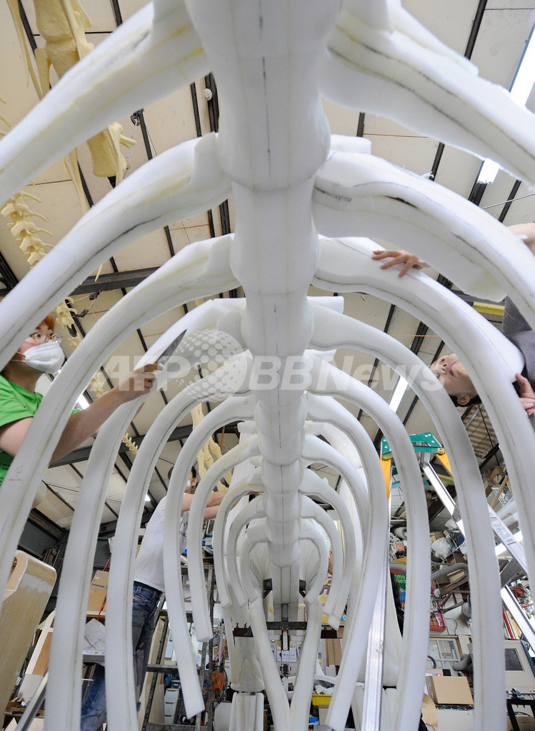 ニュース 環境・科学 肉食恐竜スピノサウルスの骨格、「恐竜2009」で再現 2009年6月15日 22:42 発信地:神奈川 [ アジア・オセアニア 神奈川 ] このニュースをシェア ‹ › ❮ 7/8 ❯ 神奈川県川崎にある模型製作所では、7月18日から千葉県・幕張メッセで開催される恐竜展「恐竜2009」のために、世界最大級の肉食恐竜スピノサウルス(Spinosaurus)の全長17メートルの全身骨格が再現されている。スピノサウルスの化石は1915年にエジプトで発見されたが、その後第2次世界大戦中に紛失された。写真は同骨格標本(2009年6月13日撮影)。(c)AFP/Toru YAMANAKA 画像作成中 ! 【6月15日 AFP】神奈川県川崎にある模型製作所では、7月18日から千葉県・幕張メッセで開催される恐竜展「恐竜2009」のために、世界最大級の肉食恐竜スピノサウルス(Spinosaurus)の全長17メートルの全身骨格が再現されている。スピノサウルスの化石は1915年にエジプトで発見されたが、その後第2次世界大戦中に紛失された。(c)AFP 環境・科学 一覧へ> メディア・報道関係・法人の方向け 写真・動画 購入のお問合せ>