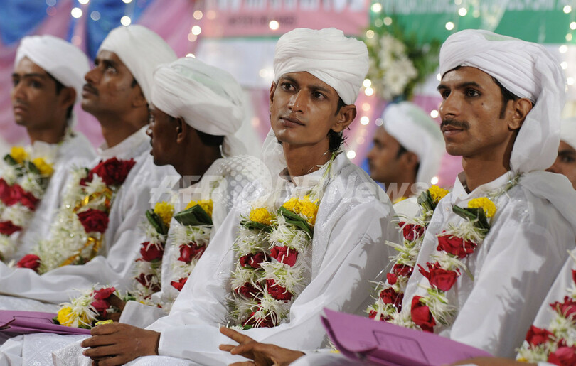 ニュース ライフ 艶やか、インドでイスラム教の集団結婚式 2009年6月16日 16:21 発信地:ムンバイ/インド [ アジア・オセアニア インド ] このニュースをシェア ‹ › ❮ 8/9 ❯ インド・ムンバイ(Mumbai)で15日、イスラム教の集団結婚式が行われた。インドでこうした集団結婚式が行われるのは、珍しいことではない。特定の社会階級の間では、花嫁の家族が巨額の持参金や高級品を花婿側に送る慣習が、依然として根強く残っている。写真は、集団結婚式に臨む花婿たち(2009年6月15日撮影)。(c)AFP/Sajjad HUSSAIN 画像作成中 ! 【6月16日 AFP】インド・ムンバイ(Mumbai)で15日、イスラム教の集団結婚式が行われた。インドでこうした集団結婚式が行われるのは、珍しいことではない。特定の社会階級の間では、花嫁の家族が巨額の持参金や高級品を花婿側に送る慣習が、依然として根強く残っている。(c)AFP ライフ 一覧へ> メディア・報道関係・法人の方向け 写真・動画 購入のお問合せ>