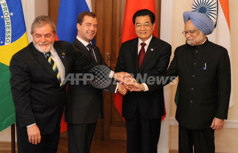【6月17日 AFP】ブラジル、ロシア、インド、中国の4か国(BRICs)は16日、ロシア中部エカテリンブルク(Yekaterinburg)で初の首脳会議を開き、国際通貨システムの多様化の必要性などを訴える共同声明を発表した。