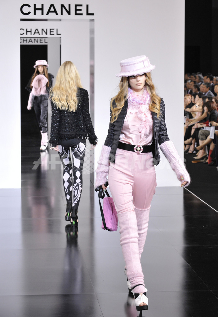 【6月17日 AFP】都内・国立代々木競技場で16日、カール・ラガーフェルド(Karl Lagerfeld)手掛ける「シャネル(CHANEL)」の09/10年秋冬コレクションのショーが開催された。(c)AFP
