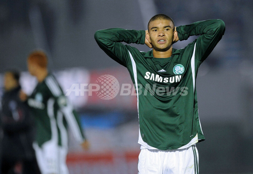 サッカーリベルタドーレス杯2009(%%Copa Libertadores de America 2009%%)準々決勝、ナシオナル・モンテビデオ(%%Nacional Montevideo%%、ウルグアイ)対パルメイラス(%%Palmeiras%%、ブラジル)第2戦。試合は0-0の引き分けに終わり、2試合合計1-1-となったがアウェーゴール規定によりナシオナル・モンテビデオが準決勝に進んだ。写真は準々決勝敗退にに終わり落胆するパルメイラスのマウリシオ・ラモス(%%Mauricio Ramos %%)。(2009年6月17日撮影)(c)AFP/MIGUEL ROJO