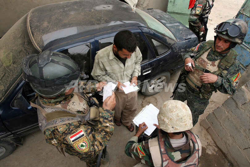 ニュース 戦争・紛争 米軍の撤退期限前に混乱続くイラク 2009年6月20日 21:11 発信地:モスル/イラク [ 中東・北アフリカ イラク ] このニュースをシェア ‹ › ❮ 6/10 ❯ イラク都市部からの駐留米軍の撤退期限が月末に迫るなか、混乱状態の続く北部モスル(Mosul)で、米軍やイラク治安部隊は連日の巡回警備を続けている。写真は、巡回警備する米軍兵士とイラク軍兵士(2009年6月17日撮影)。(c)AFP/ALI AL-SAADI 画像作成中 ! 【6月20日 AFP】イラク都市部からの駐留米軍の撤退期限が月末に迫るなか、混乱状態の続く北部モスル(Mosul)で、米軍やイラク治安部隊は連日の巡回警備を続けている。(c)AFP 戦争・紛争 一覧へ> メディア・報道関係・法人の方向け 写真・動画 購入のお問合せ>