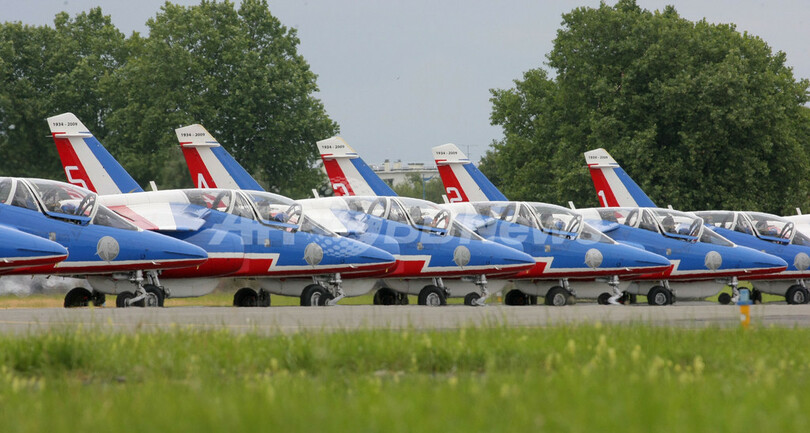 ニュース 政治・経済 パトルイユ・ド・フランス登場、パリ国際航空ショー 2009年6月21日 17:05 発信地:ルブルジェ/フランス [ ヨーロッパ フランス ] このニュースをシェア ‹ › ❮ 28/56 ❯ 仏パリ(Paris)郊外のルブルジェ(Le Bourget)で開催中の第48回パリ国際航空ショー(Paris International Air Show)は6日目の20日、フランス空軍のアクロバットチーム、パトルイユ・ド・フランス(Patrouille de France)の展示飛行などが行われた。ニコラ・サルコジ(Nicolas Sarkozy)大統領も会場を訪れた。写真は、離陸を待つパトルイユ・ド・フランス(2009年6月20日撮影)。(c)AFP/PIERRE VERDY 画像作成中 ! 【6月21日 AFP】仏パリ(Paris)郊外のルブルジェ(Le Bourget)で開催中の第48回パリ国際航空ショー(Paris International Air Show)は6日目の20日、フランス空軍のアクロバットチーム、パトルイユ・ド・フランス(Patrouille de France)の展示飛行などが行われた。ニコラ・サルコジ(Nicolas Sarkozy)大統領も会場を訪れた。(c)AFP 政治・経済 一覧へ> メディア・報道関係・法人の方向け 写真・動画 購入のお問合せ>