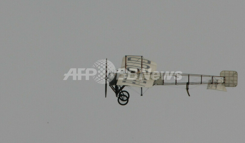 仏パリ(Paris)郊外のルブルジェ(Le Bourget)で開催中の第48回パリ国際航空ショー(Paris International Air Show)は6日目の20日、フランス空軍のアクロバットチーム、パトルイユ・ド・フランス(Patrouille de France)の展示飛行などが行われた。ニコラ・サルコジ(Nicolas Sarkozy)大統領も会場を訪れた。写真は、デモ飛行するブレリオ(Bleriot)のビンテージ機(2009年6月20日撮影)。(c)AFP/PIERRE VERDY