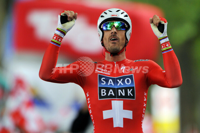 【6月22日 AFP】第73回ツール・ド・スイス(73rd Tour de Suisse)第9ステージ(ベルン、38.5キロメートル個人タイムトライアル)。第8ステージを終えて総合2位につけていたチームサクソバンク(Team Saxo Bank)のファビアン・カンチェラーラ(Fabian Cancellara、スイス)が、45分59秒でステージ優勝し、合計タイムを33時間05分51秒として逆転で総合優勝を果たした。