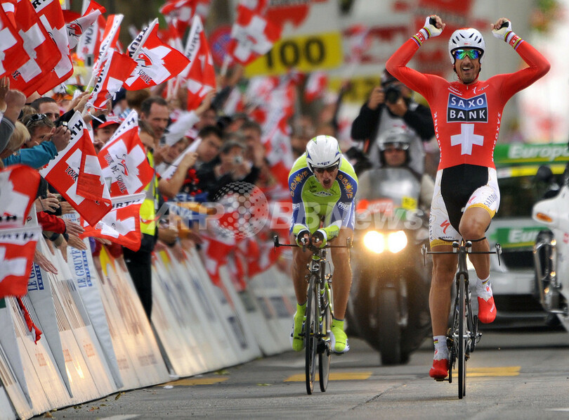 【6月22日 AFP】第73回ツール・ド・スイス(73rd Tour de Suisse)第9ステージ(ベルン、38.5キロメートル個人タイムトライアル)。第8ステージを終えて総合2位につけていたチームサクソバンク(Team Saxo Bank)のファビアン・カンチェラーラ(Fabian Cancellara、スイス)が、45分59秒でステージ優勝し、合計タイムを33時間05分51秒として逆転で総合優勝を果たした。