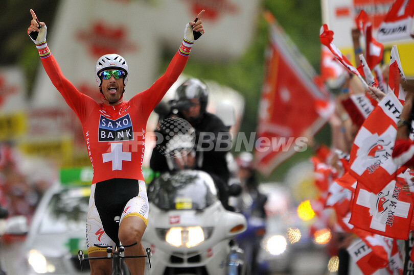 【6月22日 AFP】第73回ツール・ド・スイス(73rd Tour de Suisse)第9ステージ(ベルン、38.5キロメートル個人タイムトライアル)。第8ステージを終えて総合2位につけていたチームサクソバンク(Team Saxo Bank)のファビアン・カンチェラーラ(Fabian Cancellara、スイス)が、45分59秒でステージ優勝し、合計タイムを33時間05分51秒として逆転で総合優勝を果たした。