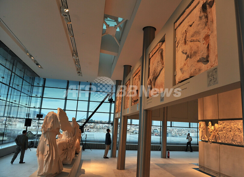 ニュース ライフ 古代ギリシャの美術品集めた新アクロポリス博物館がオープン 2009年6月23日 15:58 発信地:アテネ/ギリシャ [ ヨーロッパ ギリシャ ] このニュースをシェア ‹ › ❮ 2/22 ❯ ギリシャ・アテネ(Athens)で20日、新アクロポリス博物館(New Acropolis Museum)がオープンした。総面積2万5000平方メートル、3階建ての新博物館は、スイス生まれの建築家バーナード・チュミ(Bernard Tschumi)氏の設計によるもので、旧博物館の所蔵品を中心に歴史遺物や彫刻像など350点以上が展示されている。写真は、パルテノン神殿(Parthenon)のレリーフを鑑賞する鑑賞する来館者(2009年6月20日撮影)。(c)AFP/LOUISA GOULIAMAKI 画像作成中 ! 【6月23日 AFP】ギリシャ・アテネ(Athens)で20日、新アクロポリス博物館(New Acropolis Museum)がオープンした。総面積2万5000平方メートル、3階建ての新博物館は、スイス生まれの建築家バーナード・チュミ(Bernard Tschumi)氏の設計によるもので、旧博物館の所蔵品を中心に歴史遺物や彫刻像など350点以上が展示されている。(c)AFP ライフ 一覧へ> メディア・報道関係・法人の方向け 写真・動画 購入のお問合せ>