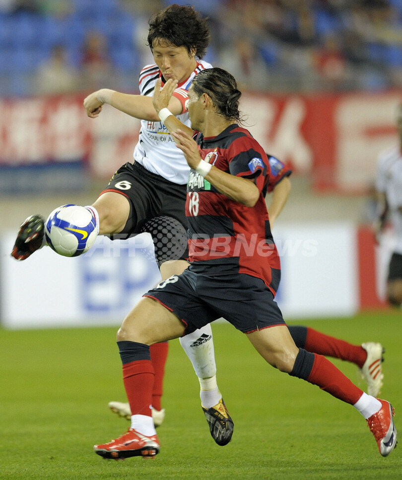 【6月24日 AFP】(25日写真追加、記事更新)サッカーAFCチャンピオンズリーグ2009(AFC Champions League 2009)決勝トーナメント1回戦、鹿島アントラーズ(Kashima Antlers)対FCソウル(FC Seoul)。試合は2-2で突入した延長戦でも決着がつかず、ペナルティーキック(PK)戦の末アントラーズが4-5で敗れ、準々決勝進出を逃した。