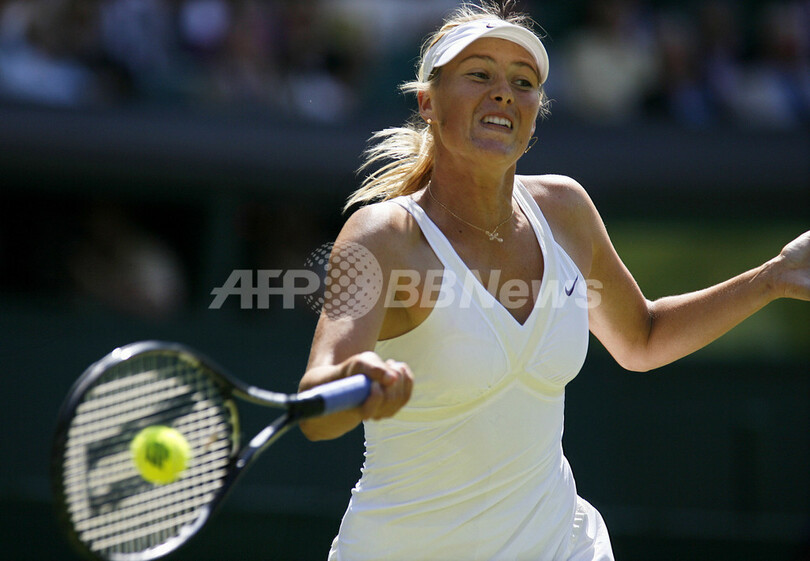 肩の手術から10か月のブランクを経て復帰後4大会目を迎えたシャラポワは、ドゥルコに敗れ、2大会連続での2回戦敗退となった。(c)AFP/Dave James